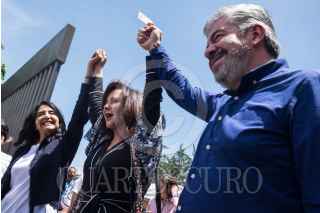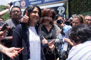 CIUDAD DE MÉXICO, 01JULIO2018.- Purificación Carpinteyro, candidata a la jefatura de gobierno por el partido Nueva Alianza, emitió su voto en las casillas ubicadas en el Colegio Cumbre México en la colonia Lomas en la delegación Cuajimalpa de Morelos. La candidata Alejandra Barrales acompaño a Carpinteyro. FOTO: ANDREA MURCIA /CUARTOSCURO.COM