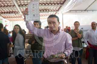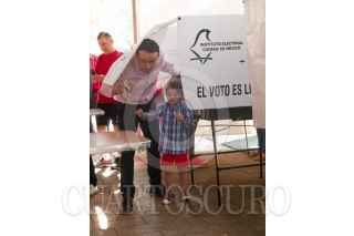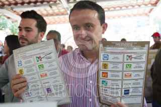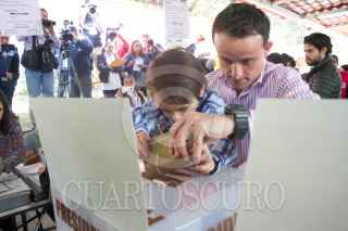 CIUDAD DE MÉXICO, 01JULIO2018.- Mikel Arriola, candidato a jefe del Gobierno de la Ciudad de México, durante su votación esta mañana. Acudió acompañado de su hijo Santiago y de su esposa. FOTO: VICTORIA VALTIERRA / CUARTOSCURO.COM