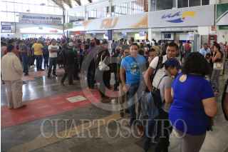 PUEBLA, PUEBLA 01JULIO2018.- Largas filas de votantes se dieron cita en la casilla especial de la terminal de autobuses CAPU, en donde los votantes se quejaron tras terminarse las boletas electorales. FOTO: CUARTOSCURO.COM