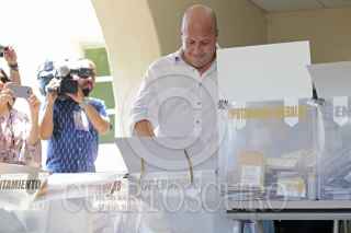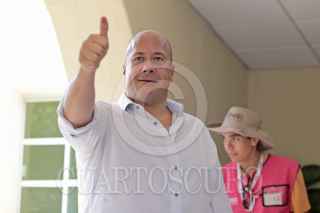 GUADALAJARA, JALISCO, 01JULIO2018.- Enrique Alfaro Ramirez candidato a la gubernatura del estado de Jalisco por el Partido Movimiento Ciudadano, acudió pasado el medio día a emitir su voto a la casilla ubicada en Av. de La Paz esquina con la calle Pedro Calderón de la Barca en la colonia Arcos Vallarta. FOTO: FERNANDO CARRANZA GARCIA / CUARTOSCURO.COM