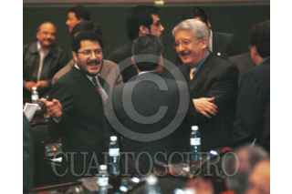 Los diputados Marti Batres (PRD) Y Oscar Levin (PRI) durante la sesión ordinaria en la Camara de Diputados. FOTO: Christian Palma/CUARTOSCURO.COM