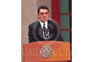 Cristian Castaño Contreras, director de Instituto Mexicano de la Juventud, durante su discurso en la Inauguración del Primer Encuentro Nacional de Promotores del Programa Juvenil de Prevención Integral, en la residencia oficial de los Pinos. FOTO: Victoria Valtierra/CUARTOSCURO.COM