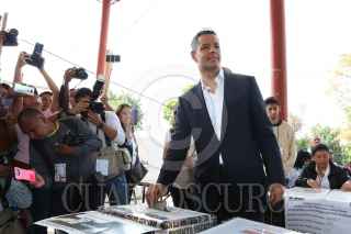 OAXACA , OAXACA, 01JULIO2018.- El gobernador del estado, Alejandro Murat y su esposa, Ivette Morán de Murat presidenta honoraria del Sistema DIF Estatal sufragar on en la casilla del Ejido Guadalupe Victoria en la capital del estado. FOTO: ARTURO PÉREZ ALFONSO/ CUARTOSCURO.COM