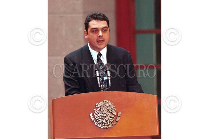 Cristian Castaño Contreras, director de Instituto Mexicano de la Juventud, durante su discurso en la Inauguración del Primer Encuentro Nacional de Promotores del Programa Juvenil de Prevención Integral, en la residencia oficial de los Pinos. FOTO: Victoria Valtierra/CUARTOSCURO.COM