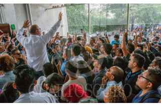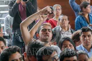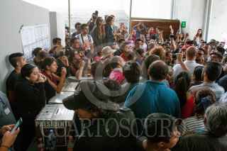 CIUDAD DE MÉXICO 01JULIO2018.- Personas provenientes de diversos Estados de la República acudieron desde temprano a formarse en las casillas especiales ubicadas en la Biblioteca José Vasconcelos. Sin embargo se agotaron las 1500 boletas de las dos casillas desde las 3 de la tarde, por lo que decidieron dar portazo y manifestar su descontento. FOTO: JUAN PABLO ZAMORA /CUARTOSCURO.COM