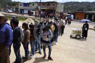 OXCHUC, CHIAPAS, 01JULIO2018.- Pobladores del municipio indígena tseltal, votaron sin insistentes y con alta participación luego de que acordaran con autoridades estatales y federales la instalación de casillas solo para elección de Presidente, Diputados, Senadores, Gobernador y legisladores locales, sin permitir elección de Ayuntamiento. El municipio se mantiene regido por un Consejo Municipal provisional mientras se resuelve por la vía legal la Autonomía y la suspensión a los partidos políticos. FOTO: ADOLFO VLADIMIR /CUARTOSCURO.COM