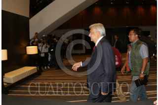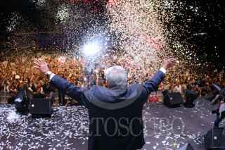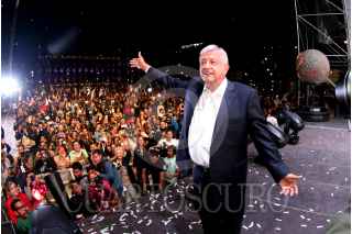 CIUDAD DE MÉXICO, 01JULIO2018.-Andres Manuel Lopez Obrador, virtual ganador de la presidencia de la república a su llegada al Zócalo de la Ciudad de México. FOTO: SAÚL LÓPEZ /CUARTOSCURO.COM