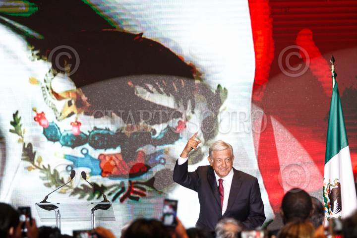CIUDAD DE MÉXICO, 01JULIO2018.-Andres Manuel Lopez Obrador, virtual ganador de la presidencia de la república a su llegada al Zócalo de la Ciudad de México. FOTO: SAÚL LÓPEZ /CUARTOSCURO.COM