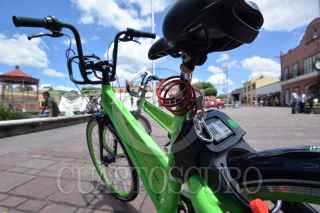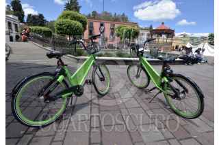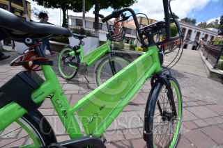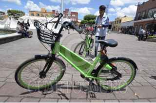 METEPEC, ESTADO DE MÉXICO, 03JULIO2018.- Los habitantes del Pueblo Mágico de Metepec tienen un nuevo servicio de transporte, con un programa piloto de bicicleta pública llamado VBike, se activa a través de una aplicación móvil y el cobro va de un día hasta una membresía por un año. Algunas bicicletas han sido colocadas en distintas partes del municipio para dar a conocer este programa. FOTO: ARTEMIO GUERRA BAZ /CUARTOSCURO.COM