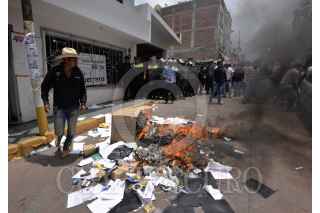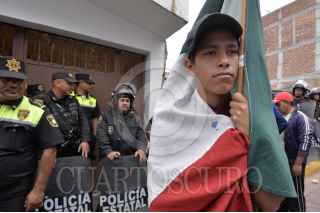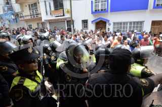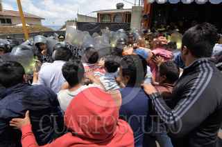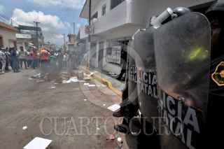 VILLA GUERRERO, ESTADO DE MÉXICO, 04JULIO2018.- Un enfrentamiento entre habitantes de Villa Guerrero y elementos de la Secretaría de Seguridad estatal se registró en la junta municipal del IEEM exigiendo se realice una nueva elección en este municipio ya que se registraron varias irregularidades el 1 de julio. FOTO: ARTEMIO GUERRA BAZ /CUARTOSCURO.COM