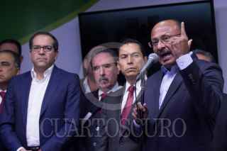 CIUDAD DE MÉXICO, 04JULIO2018.- Carlos Aceves del Olmo, secretario de la Confederación de Trabajadores de México, apareció durante un mensaje que encabezó René Juárez Cisneros, dirigente nacional del PRI, para decir que tras la reciente derrota electoral, su partido actuará como una oposición responsable. FOTO: GALO CAÑAS /CUARTOSCURO.COM
