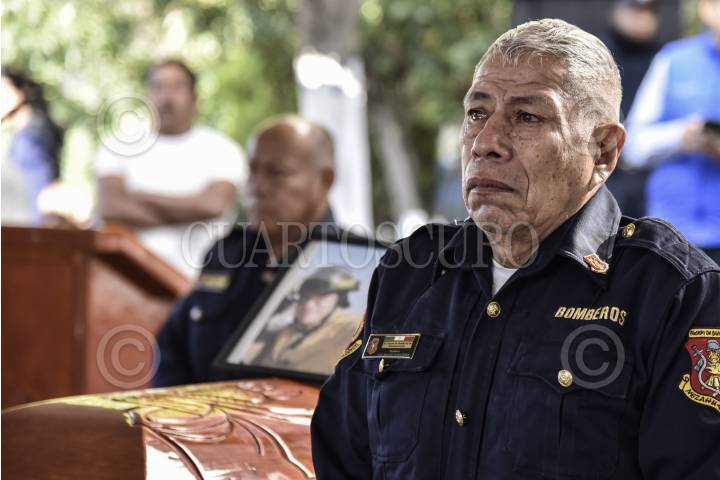 MELCHOR OCAMPO, ESTADO DE MÉXICO, 06JULIO2018.- Familiares y compañeros de trabajo de los tres bomberos que fallecieron la explosión registrada en la zona conocida como La Saucera, en el municipio de Tultepec, acudieron a la ceremonia en su honor llevada a cabo en la explanada de Palacio Municipal de Melchor Ocampo. Entre los bomberos fallecidos se encuentra el Subdirector de Bomberos de esta entidad, Mario Lino. FOTO: MARIO JASSO /CUARTOSCURO.COM