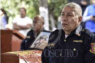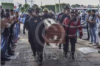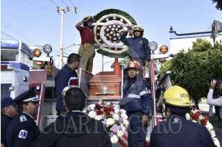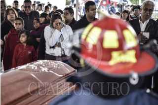 MELCHOR OCAMPO, ESTADO DE MÉXICO, 06JULIO2018.- Familiares y compañeros de trabajo de los tres bomberos que fallecieron la explosión registrada en la zona conocida como La Saucera, en el municipio de Tultepec, acudieron a la ceremonia en su honor llevada a cabo en la explanada de Palacio Municipal de Melchor Ocampo. Entre los bomberos fallecidos se encuentra el Subdirector de Bomberos de esta entidad, Mario Lino. FOTO: MARIO JASSO /CUARTOSCURO.COM
