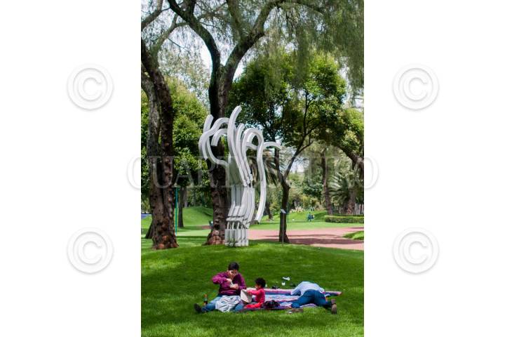 CIUDAD DE MÉXICO, 07JULIO2018.- Una familia pasa un rato de descanso en los jardines del Centro Nacional de las Artes, al sur de la ciudad. FOTO: DIEGO SIMÓN SÁNCHEZ /CUARTOSCURO.COM
