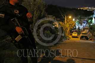 TLAQUEPAQUE, JALISCO, 09JULIO2018.- La noche de ayer siete personas perdieron la vida al ser agredidas por hombres armados que ingresaron a un inmueble donde se desarrollaba una reunión en la calle 1 de Noviembre y 12 de Diciembre de la colonia Francisco I. Madero en las faldas del Cerro del Cuatro, al lugar arribaron elementos de la Policía Municipal así como de la Fiscalía General del Estado y personal del Servicio Jalisciense de Ciencias Forenses (IJCF), quienes se encargaron del levantamiento de evidencias y de los ahora occisos. FOTO: FERNANDO CARRANZA GARCIA / CUARTOSCURO.COM