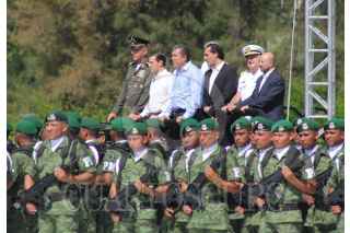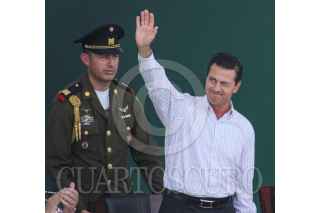 IRAPUATO, GUANAJUATO, 09JULIO2018.- Enrique Peña Nieto, Presidente de México, y Salvador Cienfuegos, secretario de la Defensa, encabezaron la inauguración de la 12va. Brigada de la Policía Militar, en su discurso el Jefe del Ejecutivo resaltó la entrega patriótica del Ejército mexicano. FOTO: LUIS RAMÍREZ /CUARTOSCURO.COM