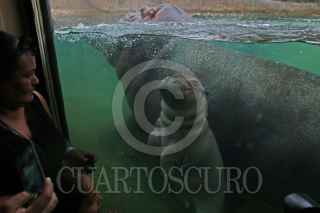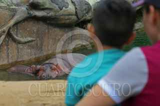 GUADALAJARA, JALISCO, 10JULIO2018.- Kiboko Bwawa es el hábitat del Zoológico Guadalajara donde desde hace alrededor de dos meses viven una cría de hipopótamo y su madre de nombre Gina, mismos que forman parte de las atracciones mas relevantes de dicho ecosistema en la ciudad. FOTO: FERNANDO CARRANZA GARCIA / CUARTOSCURO.COM