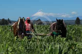 ATLANGATEPEC, TLAXCALA, 10JULIO2018. Agricultores trabajan la tierra día a día desde muy temprano para evitar que las lluvias les dificulten su labor, los campesinos tlaxcaltecas utilizan la yunta para remover la tierra y con ello quitar la maleza de hierba que impide que las milpas absorban de manera óptima los nutrientes necesarios para crecer y así tener mazorcas de buen tamaño. FOTO: JOAQUÍN SANLUIS /CUARTOSCURO.COM