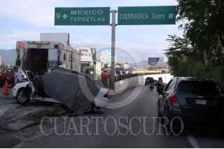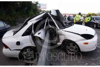 CUERNAVACA, MORELOS, 11JULIO2018.- Un hombre murió prensado en la entrada sur del Paso Exprés, cuando el vehículo en el que viajaba como copiloto se estrellara de costado contra la barrera de protección. La conductora resultó herida, por lo que fue trasladada al hospital para su atención médica. FOTO: MARGARITO PÉREZ RETANA /CUARTOSCURO.COM