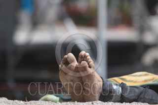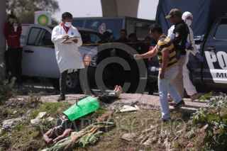 PUEBLA, PUEBLA, 12JULIO2018.- Fue hallado muerto un hombre de entre 30 y 40 años estaba atado de pies y manos con cinta adhesiva y con un mensaje clavado en el estomago presumiblemente del crimen organizado, el cual estaba firmado con la leyenda “Comandante Aragón”. El cuerpo fue abandonado al filo del medio día a metros de la autopista México-Puebla, a la altura de la Junta auxiliar de San Felipe Hueyotlipan sentido Orizaba, policía municipal, estatal y elementos federales realizaron labores de investigación y levantamiento del cadáver. FOTO: ALFREDO FERNÁNDEZ /CUARTOSCURO.COM