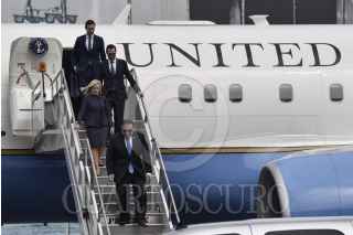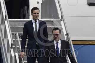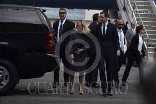 CIUDAD DE MÉXICO, 13JULIO2018.- Michael Pompeo, Secretario de Estado de Estados Unidos; Steven Mnuchin, Secretario del Tesoro; Kirstjen Nielsen, Secretaria de Seguridad Interna y Jared Kushner, Asesor Senior del Presidente, durante su llegada al Hangar de la Unidad Especial De Transporte Aéreo del Alto Mando (U.E.T.A.A.M.) del Ejército en el Aeropuerto Internacional de la capital, previo a reunirse con el virtual presidente electo Andrés Manuel López Obrador. FOTO: MARIO JASSO /CUARTOSCURO.COM