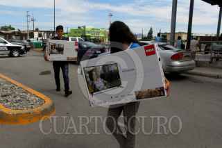 CIUDAD JUÁREZ, CHIHUAHUA,13JULIO2018.- La tienda de autoservico Bodega Aurrerá fue obligada por la Procuraduría Federal del Consumidor (Profeco) a cumplir con la venta de televisores a 3.29 pesos, tras etiquetarlos así por equivocación, 35 personas pagaron esa cantidad en la sucursal del Perimetral Carlos Amaya, tras aceptar vender los aparatos pero solo uno por familia. El acuerdo sólo incluyó las televisiones de 32 pulgadas, excluyendo a las de mayor tamaño cuyo precio fue indicado a 6 pesos; al mismo tiempo, anoche cuando surgió el caso, la empresa se protegió y cerró sus puertas para evitar que más gente entrara a tomar los televisores a precio de regalo. FOTO: NACHO RUÍZ /CUARTOSCURO.COM