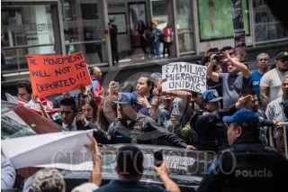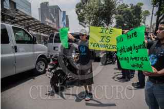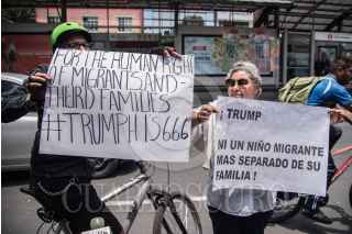 CIUDAD DE MÉXICO, 13JULIO2018.- Diversos actos de protesta y manifestaciones en contra de las políticas migratorias por parte del gobierno estadounidense, se presentaron durante el arribo de la comitiva norteamericana quien sostuvo una reunión el virutal presidente electo, Andrés Manuel López Obrador, en su casa de campaña ubicada en la colonia Roma. FOTO: MARIO JASSO /CUARTOSCURO.COM