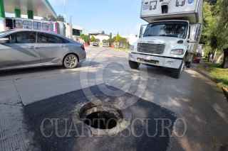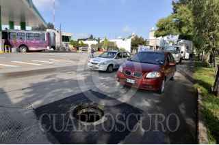 SAN MATEO ATENCO, ESTADO DE MÉXICO, 13JULIO2018.- El robó de tapas de coladeras en el Valle de Toluca es recurrente, tal es el caso de Paseo Tollocanen carriles de baja velocidad en donde los automovilistas tienen que manejar con extrema precaución para no caer en las coladeras abiertas. FOTO: ARTEMIO GUERRA BAZ /CUARTOSCURO.COM