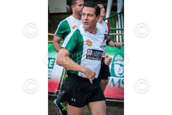 CIUDAD DE MÉXICO, 14JULIO2018.- Enrique Peña Nieto, presidente de México, encabezó la octava edición del de la carrera Molino del Rey la cual es organizada por el Estado Mayor Presidencial en un circuito dentro del Bosque de Chapultepec que abarca 10 kilómetros. En la competencia también participaron Francisco Guzmán Ortiz, Jefe de la Oficina de Presidencia; Eduardo Sánchez Hernández, vocero del Gobierno de la República; Roberto Francisco Miranda, jefe del Estado Mayor; Alfredo Cervantes Castillo titular de la CONADE, entre otros. FOTO: DIEGO SIMÓN SÁNCHEZ /CUARTOSCURO.COM