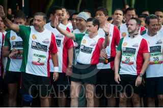 CIUDAD DE MÉXICO, 14JULIO2018.- Enrique Peña Nieto, presidente de México, encabezó la octava edición del de la carrera Molino del Rey la cual es organizada por el Estado Mayor Presidencial en un circuito dentro del Bosque de Chapultepec que abarca 10 kilómetros. En la competencia también participaron Francisco Guzmán Ortiz, Jefe de la Oficina de Presidencia; Eduardo Sánchez Hernández, vocero del Gobierno de la República; Roberto Francisco Miranda, jefe del Estado Mayor; Alfredo Cervantes Castillo titular de la CONADE, entre otros. FOTO: DIEGO SIMÓN SÁNCHEZ /CUARTOSCURO.COM