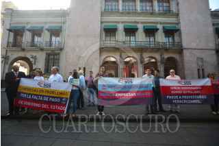 XALAPA, VERACRUZ, 16JULIO2018.- Empresarios pertenecientes a la asociación S.O.S. protestaron frente al palacio de gobierno por falta de pagos a proveedores desde la administración de "Javier N". Los inconformes piden respuesta del actual gobierno. FOTO: ALBERTO ROA /CUARTOSCURO.COM