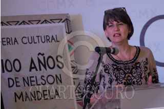 CIUDAD DE MÉXICO, 18JULIO2018.- Jacqueline L´Hoist Tapia, directora del Consejo para Prevenir y Eliminar la Discriminación, presidió conferencia por el Día Internacional de Nelson Mandela, 100 años de su Natalicio y el Decenio Afro, también asistieron miembros del Instituto Nelson Mandela. FOTO: ANDREA MURCIA /CUARTOSCURO.COM