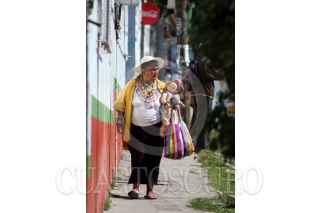 CUERNAVACA, MORELOS, 18JULIO2018.-Una mujer de la tercera edad ataviada con anillos, collares y pulseras multicolores camina por la calle Estado de Puebla, al sur de la capital, con una muñeca en sus brazos. FOTO: MARGARITO PÉREZ RETANA /CUARTOSCURO.COM