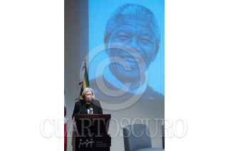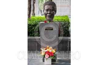 CIUDAD DE MÉXICO, 18JULIO2018.- Personas colocaron flores en el busto de Nelson Mandela ubicado afuera del Museo de Memoria y Tolerancia, con motivo del centenario de su natalicio. FOTO: DIEGO SIMÓN SÁNCHEZ /CUARTOSCURO.COM