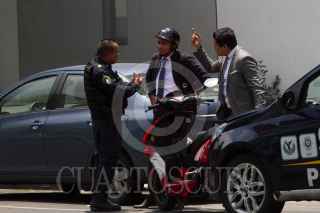 CIUDAD DE MÉXICO, 19JULIO2018.- Dos jóvenes discuten con un policía luego de que este los detuviera por supuestamente cometer una infracción cuando viajaban en su motoneta, esto a pesar de que el oficial no pertenece a la Policía de Transito quienes son los únicos autorizados para hacerlo, la historia en la colonia Condesa. FOTO: MOISÉS PABLO /CUARTOSCURO.COM