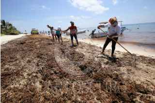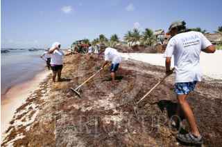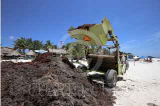QUINTANA ROO, 20JULIO2018. Ya se han limpiado alrededor de 79 mil 863.6 metros cúbicos de sargazo en las playas de siete municipios de Quintana Roo, resultado de la primera etapa para atender el atípico arribo de estas macro algas marinas, provenientes del Mar de los Sargazos. FOTO: CUARTOSCURO.COM