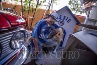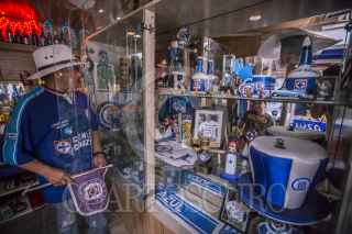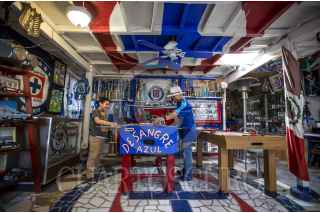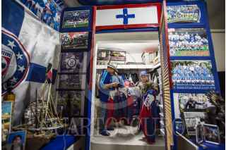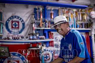 TIJUANA, BAJA CALIFORNIA, 21JULIO2018.- Don Roy Vargas se considera de “sangre azul” ya que desde temprana edad ha sido ferviente seguidor del equipo de fútbol Cruz Azul, contra viento y marea, en las buenas y en las malas. Basta con llegar a su hogar ubicado en la calle Alberto Einstein, colonia López Leyva en Tijuana para constatarlo. Junto con su familia han logrado llenar cada una de las paredes, cuartos e incluso pisos y reja de entrada en un homenaje al equipo, convirtiendo su casa en un templo, desde el más mínimo detalle hasta la casa del perro está decorado con el equipo de sus amores. Don Roy es un hombre jubilado que trabajó toda su vida en la construcción, de ahí empezó su pasión por los cementeros porque en su trabajo utilizaba el cemento Cruz Azul. Este equipo forma parte de su vida diría y es una pasión que no cambiaría por nada. FOTO: OMAR MARTÍNEZ /CUARTOSCURO.COM