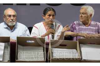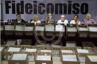 CIUDAD DE MÉXICO, 21JULIO2018.- Julio Scherer Ibarra, Laura Esquivel, Pedro Miguel, Bernardo Bátiz, Jesusa Rodríguez y Bertha Maldonado Chaneca, en conferencia de prensa dieron a conocer datos de la creación y el objetivo del fideicomiso “Por los demás” así mismo negaron depósitos de procedencia desconocida para beneficiar la campaña de Morena. FOTO: SAÚL LÓPEZ /CUARTOSCURO.COM