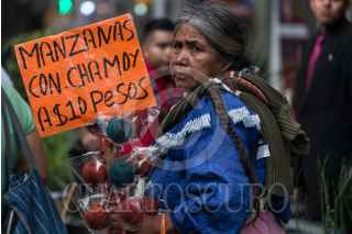 CIUDAD DE MÉXICO, 21JULIO2018.- Una mujer vende manzanas con caramelo en el andador de insurgentes. FOTO: ANDREA MURCIA /CUARTOSCURO.COM