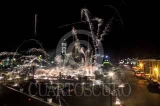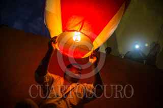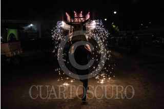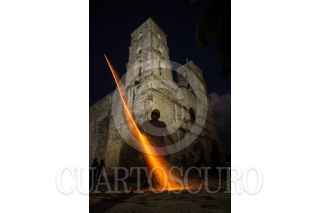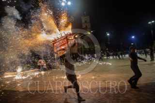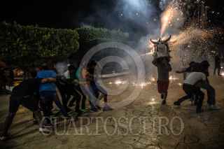 HECELCHAKÁN, CAMPECHE, 21JULIO2018.- La quema de los Toritos en este poblado es una tradición que se realiza durante el mes de julio y forma parte de los festejos del tradicional novenario en honor al Santo Cristo Señor de la Salud, patrono de la iglesia de San Francisco de Asís. Como cada año, cientos de personas acuden a la plaza principal para presenciar la quema de mas de una docena de toritos, mientras corren para resguardarse de los cohetes. FOTO: MARTÍN ZETINA /CUARTOSCURO.COM