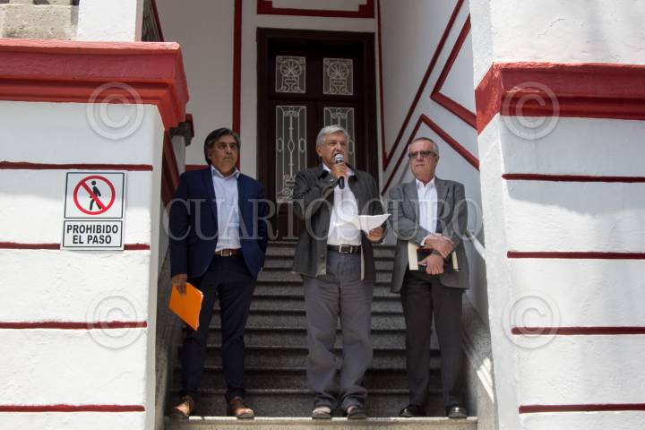 CIUDAD DE MÉXICO, 23JULIO2018.- Al final de la reunión con su gabinete, el virtual ganador de las elecciones Andrés Manuel López Obrador ofreció conferencia de prensa acompañado por Carlos Manuel Urzúa, propuesto como secretario de Hacienda, y Gerardo Esquivel, propuesto como subsecretario de dicha dependencia. López Obrador dio detalles del presupuesto durante su gestión. De igual modo, se abordaron los temas de la venta del avión presidencial, así como la carta, la respuesta de Donald Trump respecto a las negociaciones del TLCAN y el asunto de la multa impuesta por el INE hacia el partido por el fideicomiso para el apoyo a damnificados por el sismo. FOTO: GALO CAÑAS /CUARTOSCURO.COM