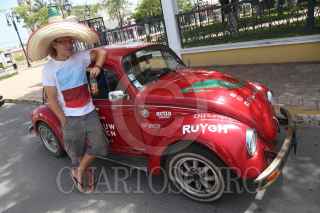 CAMPECHE, CAMPECHE, 23JULIO2018.- Dirk Jan Hendrik Lotgerink un hombre holandes de 32 años de edad, conocido como el "Güero del Vocho", desde hace 10 meses recorre el país acompañado de su perra. En su paso por la ciudad comenta que actualmente lleva recorrido 30 estados de la república y culminará visitando Yucatán y Quintana Roo. Como resultado de esta experiencia pretende publicar un libro de viajes. FOTO: MARTÍN ZETINA /CUARTOSCURO.COM