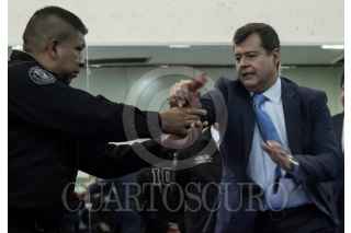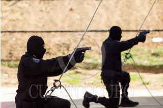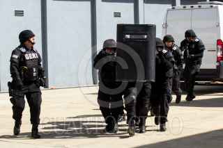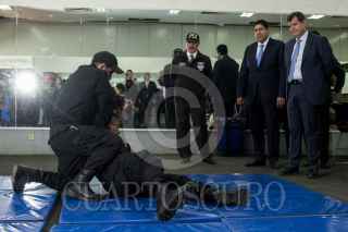 CIUDAD DE MÉXICO, 24JULIO2018.- Edmundo Garrido, procurador general de Justicia de la Ciudad de México, y José Ramón Amieva, el jefe de Gobierno de la ciudad, durante la inauguración el stand de tiro, así como el banderazo de salida de nuevos autopatrullas de la dependencia, en las inmediaciones del Centro de Capacitación y Adiestramiento de la Policía de Investigación. El nuevo stand tiene como fin mejorar las tácticas para la defensa de los elementos de seguridad ante una agresión con arma de fuego, o bien, la detención de delincuentes. Asimismo, se realizó una muestra de tácticas de neutralización en combate directo. FOTO: GALO CAÑAS /CUARTOSCURO.COM