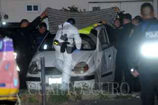 CIUDAD DE MÉXICO., 25JULIO2018.- Esta madrugada, fue hallado el cuerpo decapitado de un hombre al interior de un auto Athos, el cual se encontraba estacionado en la calle Castillo de San Diego esquina con andador Indaparapeo de la colonia Ermita Zaragoza. Sobre el toldo se encontraba la cabeza y una cartulina con mensaje de la delincuencia organizada, dirigido a personal del Reclusorio Neza Bordo. FOTO: LUIS CARBAYO /CUARTOSCURO.COM