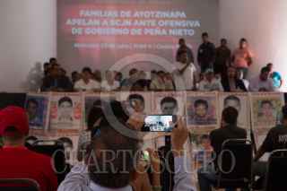 CIUDAD DE MÉXICO, 25JULIO2018.- Padres de los 43 estudiantes normalistas de Ayotzinapa desaparecidos desde 2014; ofrecieron conferencia de prensa para informar sobre su apelación a SCJN ante la ofensiva del gobierno de Enrique Peña Nieto está realizando para defender la “verdad histórica” y evitar que se concrete la comisión de investigación para la verdad y la justicia (caso iguala) en la que se plantea que el ministerio público siga conduciendo la investigación pero participen como contrapeso la CNDH y las víctimas, quienes podrían pedir asistencia a organismos internacionales. FOTO: ANDREA MURCIA /CUARTOSCURO.COM