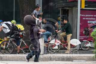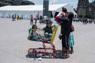 CIUDAD DE MÉXICO, 25JULIO2018.- Madre pasea por el Zócalo Capitalino a sus hijos en un carrito de mandado. FOTO: ANDREA MURCIA /CUARTOSCURO.COM