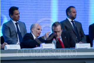 CIUDAD DE MÉXICO, 25JUNIO2018.- Santiago Urquiza, presidente de Central de Corretajes (CENCOR) [izq.], y María Ariza, directora general de Banca Institucional de Valores (BIVA) [centro], durante la presentación y arranque de operaciones de BIVA, en las inmediaciones del altar a la patria. FOTO: GALO CAÑAS /CUARTOSCURO.COM