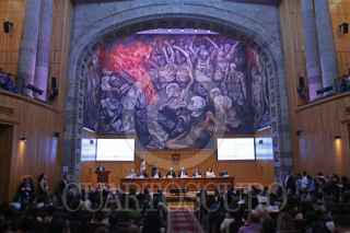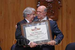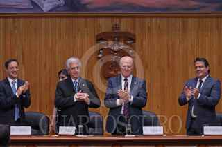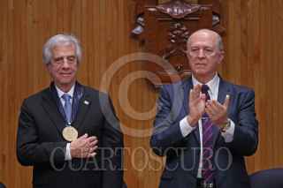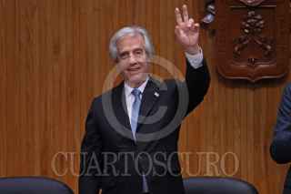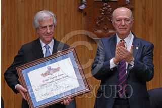 GUADALAJARA, JALISCO, 25JULIO2018.- Tabaré Ramón Vázquez Rosas Presidente de la Republica Oriental de Uruguay, fue homenajeado con el título Doctor Honoris Causa por la Universidad de Guadalajara (UdeG), esto por sus contribuciones a la vida democrática de américa latina y su lucha social, también dicha casa de estudios resalto su trayectoria como médico, académico y estadista, la ceremonia tuvo lugar en el Paraninfo Enrique Díaz de León de la UdeG y fue encabezada por el Rector General Miguel Ángel Navarro Navarro así como del Gobernador del estado, Jorge Aristóteles Sandoval Díaz. FOTO: FERNANDO CARRANZA GARCIA / CUARTOSCURO.COM