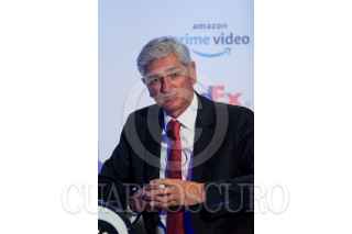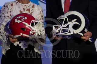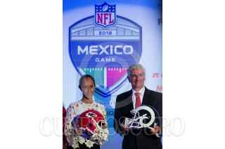 CIUDAD DE MÉXICO, 25JUNIO2018.- Carla Juan Chelala, directora general de Mercadotecnia de Grupo Financiero Banorte, y Arturo Olivé, director general de NFL México, durante la conferencia de prensa para dar detalles del inicio de la venta de boletos para el partido de temporada entre Los Angeles Rams y los Chiefs de Kansas. FOTO: GALO CAÑAS /CUARTOSCURO.COM