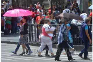 CIUDAD DE MÉXICO, 25JULIO2018.- Intenso calor se Ha dejado sentir en la capital, por lo que capitalinos se arman de sombrillas para mitigar los intensos rayos del sol. FOTO: ARMANDO MONROY /CUARTOSCURO.COM